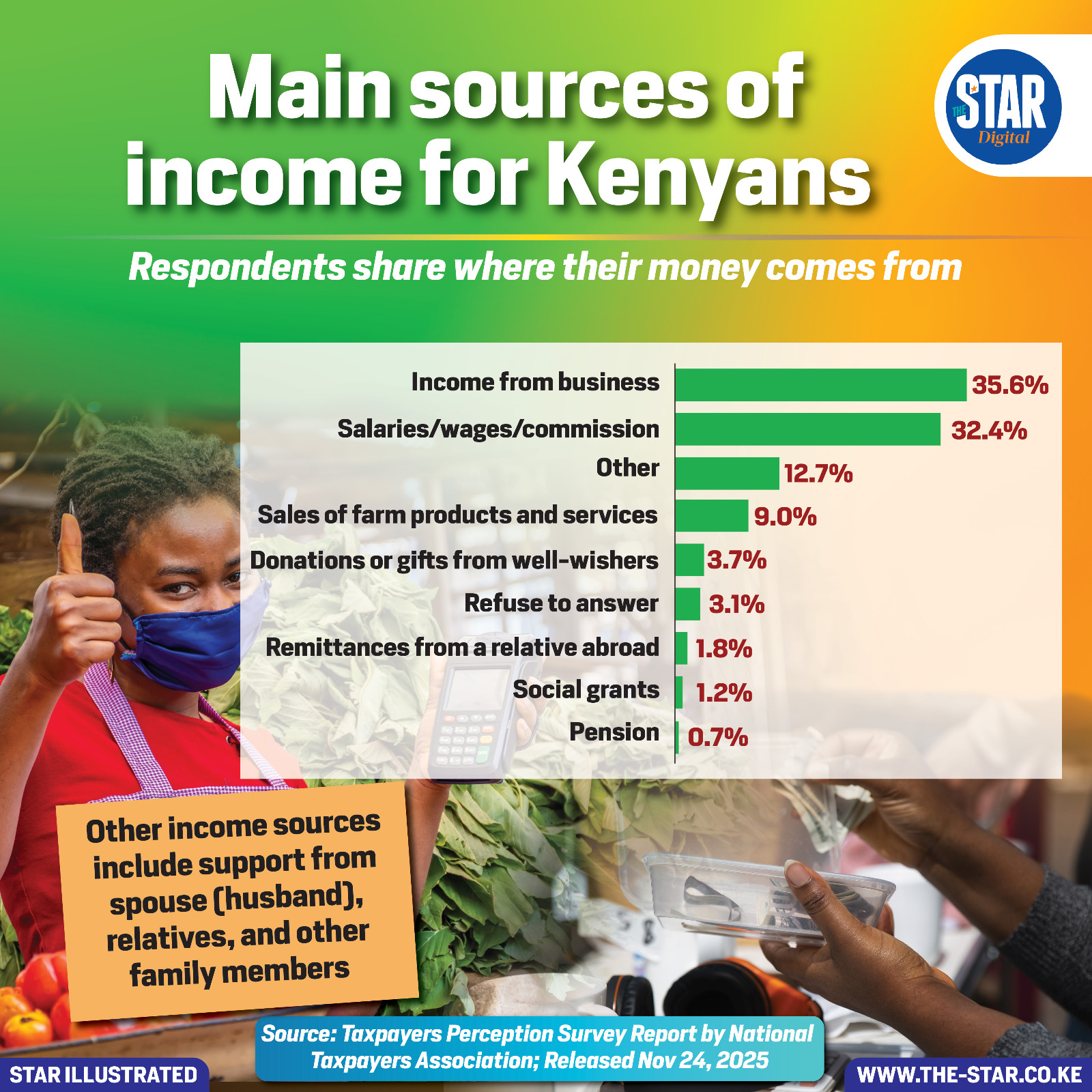 According to the latest Taxpayers Perception Survey by the National Taxpayers Association, a majority of Kenyans rely on business ventures and employment earnings as their main sources of livelihood.