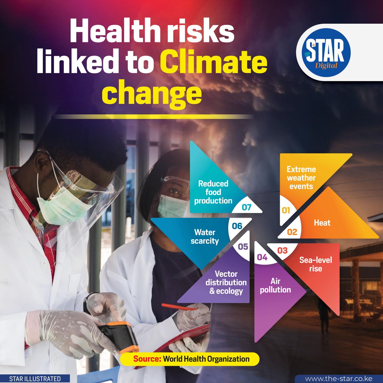 Climate change poses health risks through extreme weather events, causing injuries and fatalities