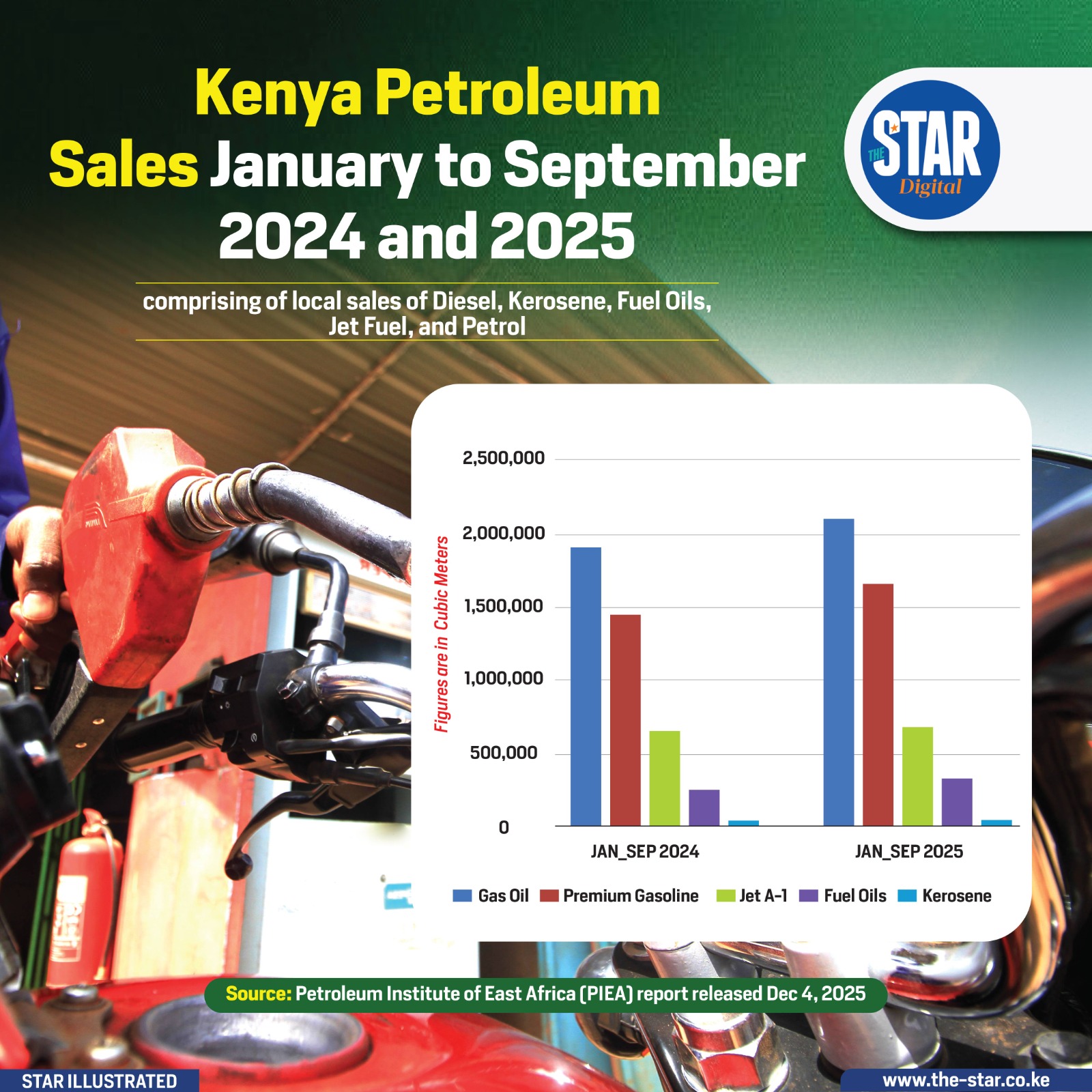 Kenya’s petroleum sales recorded slight shifts between January and September in 2024 and 2025, according to new data from the Petroleum Institute of East Africa (PIEA).