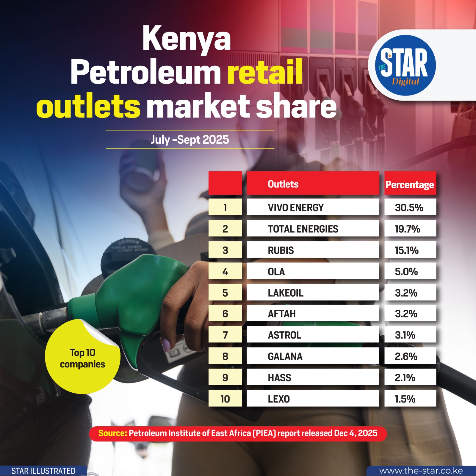 Kenya’s petroleum retail market continued to show strong competition in the third quarter of 2025, with major shifts among leading players.