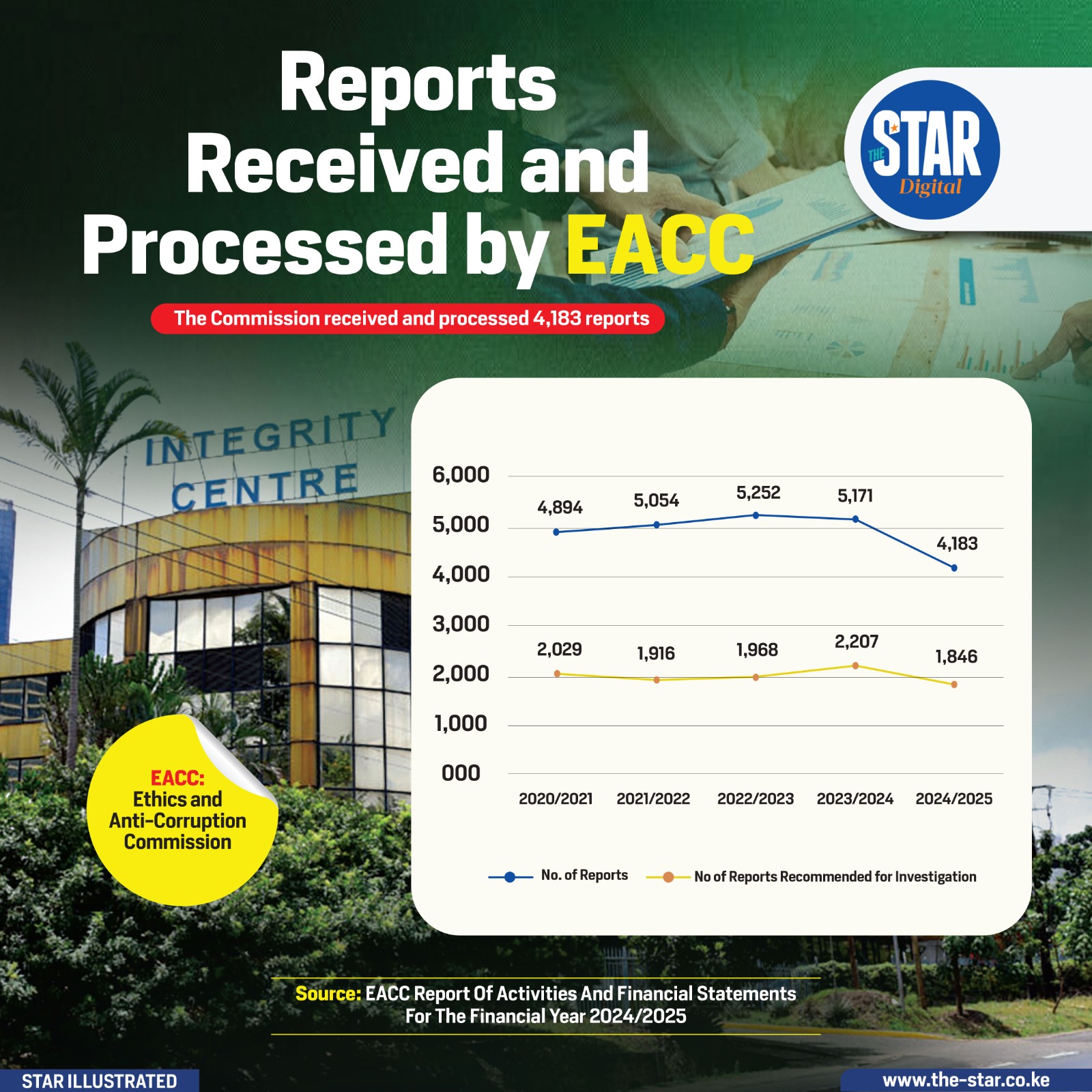 The latest EACC data highlights fluctuations in corruption-related reports received and processed over the past five financial years.