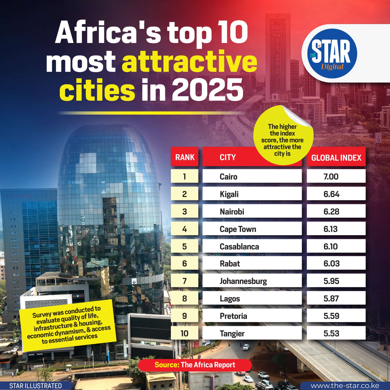 A new ranking by The Africa Report has placed Cairo, Kigali, and Nairobi among Africa’s most attractive cities in 2025, reflecting the continent’s shifting urban dynamics and growing competition for talent, investment, and infrastructure-led growth.