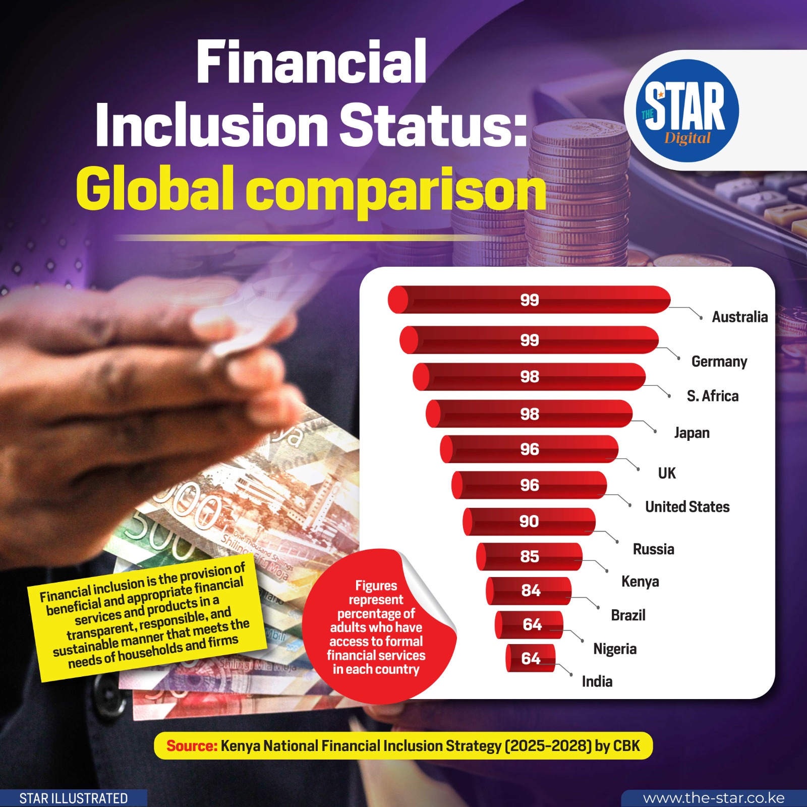 Kenya’s financial inclusion rate stands at 84 per cent, placing the country ahead of several major emerging economies but still behind advanced markets.