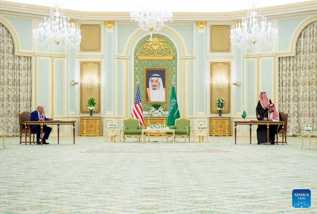 U.S. President Donald Trump on Tuesday secured a 600-billion-U.S. dollar investment commitment from Saudi Arabia in Riyadh and vowed to lift sanctions on Syria.