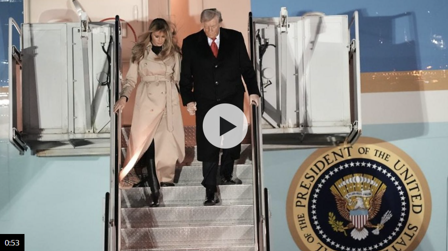 Landing at Stansted airport, President Trump received an official welcome from a line-up on the runway including Foreign Secretary Yvette Cooper.