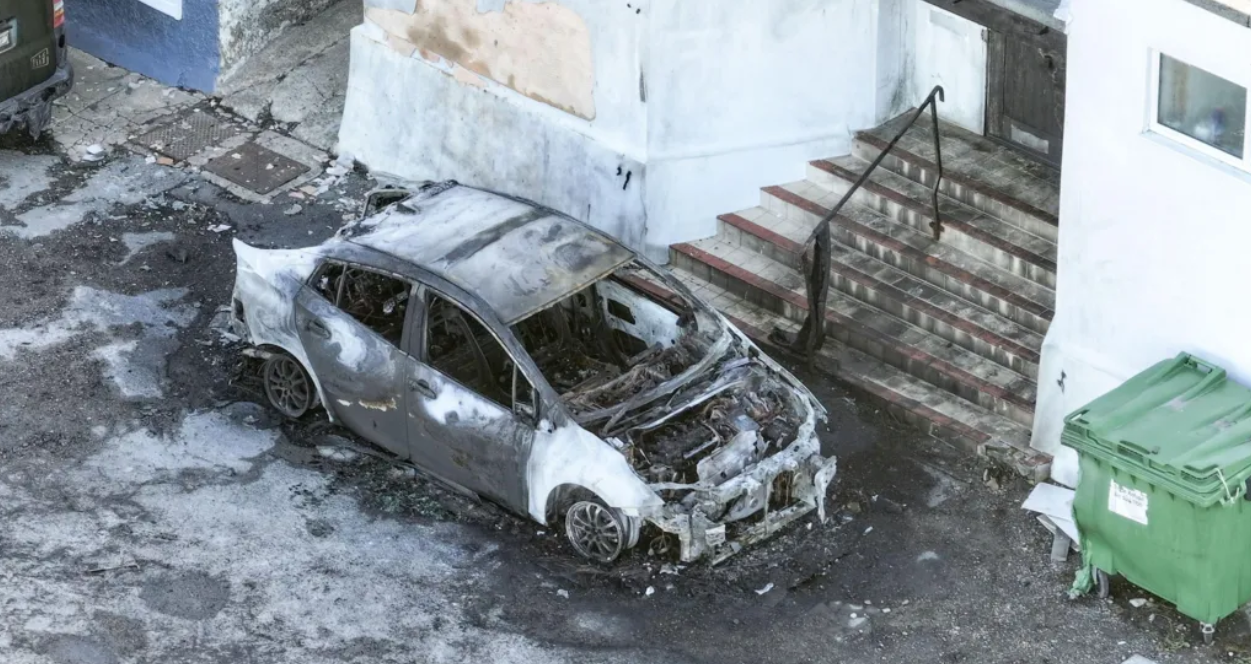 Video circulating on social media appears to show two people in balaclavas approaching an entry before a large blaze spreads.
