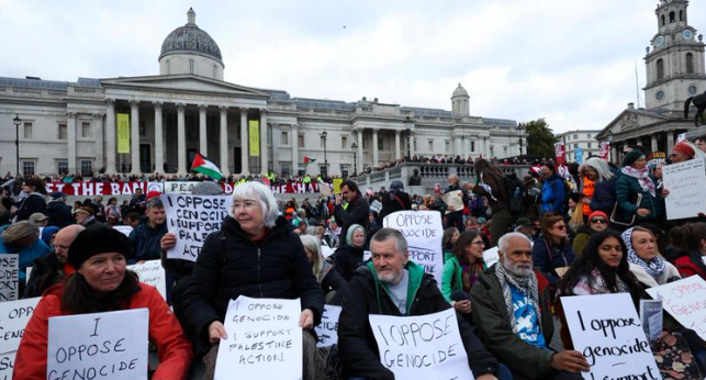 Organisers Defend Our Juries said around 1,000 took part in demonstrations around Trafalgar Square against the ban on the group and opposing Israel's actions in Gaza.