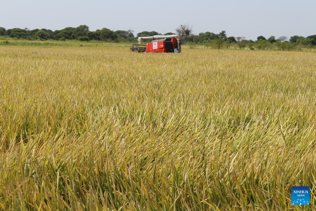 Local authorities and senior government officials joined the occasion, watching with interest and pleasure as a Chinese agricultural expert started a brand-new machine: it hummed, then roared into action to begin harvesting the rice.