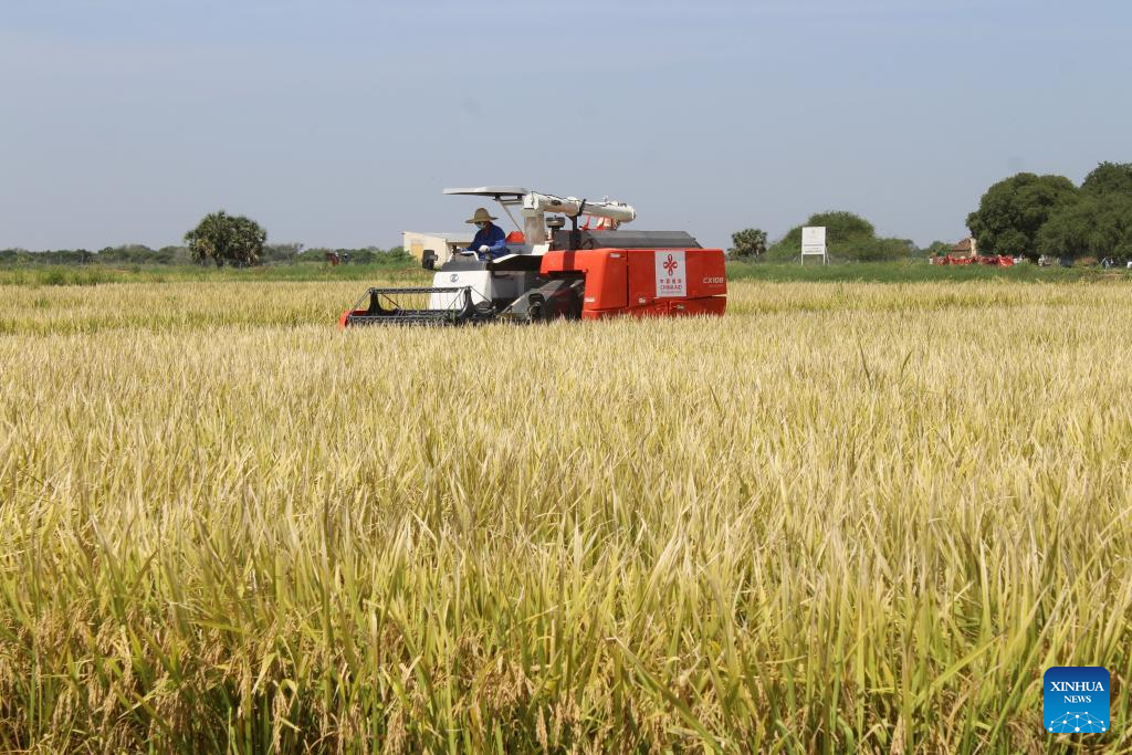 A Chinese expert operates a harvester at the demonstration field of the Agricultural Technical Assistance Mission of China to Chad in Midekin Village of Hadjer-Lamis Region, Chad, on Oct. 4, 2025. (Photo by Arnaud Mbaigolmem/Xinhua)