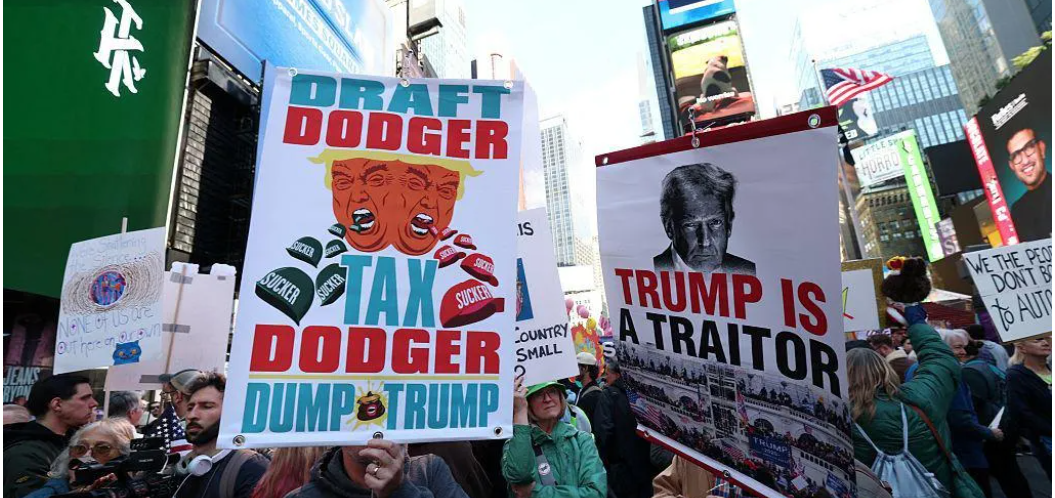 Thousands have already packed Times Square for the event organised by No Kings, a coalition of left-leaning groups.
