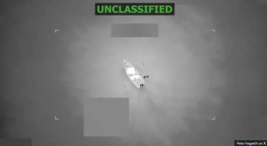 Hegseth posted a video on X showing the operation. It begins by showing a boat in crosshairs, before it explodes into a cloud of smoke.