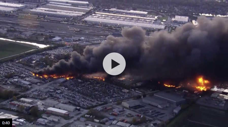 The explosion engulfed at least two nearby businesses, including a petroleum recycling company. A shelter-in-place order was initially issued for within five miles of the airport due to concerns of further explosions and air pollution, but was later reduced to just one mile.