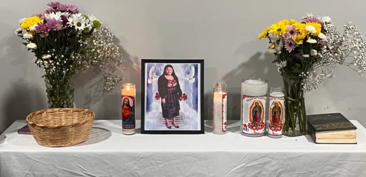 Police say they found Maria Florinda Rios Perez dead in her husband's arms on the front porch of a home on Wednesday shortly before 0700 local time (12:00 GMT).