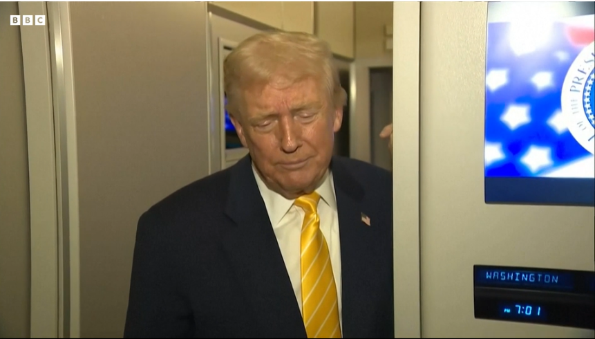 In a separate interview on Saturday recorded before his comments on Air Force One, Trump said said he had an "obligation" to sue the BBC, adding: "If you don't do it, you don't stop it from happening again with other people."