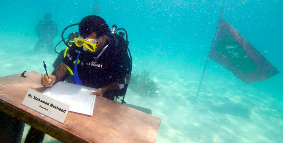 "What we are trying to make people realise is that the Maldives is a frontline state. This is not merely an issue for the Maldives but for the world. If we can't save the Maldives today, you can't save the rest of the world tomorrow," said Mohamed Nasheed, Maldivian President at the time, once he resurfaced.