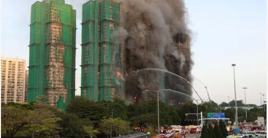 The fire is believed to have spread through bamboo scaffolding on the outside of the buildings.