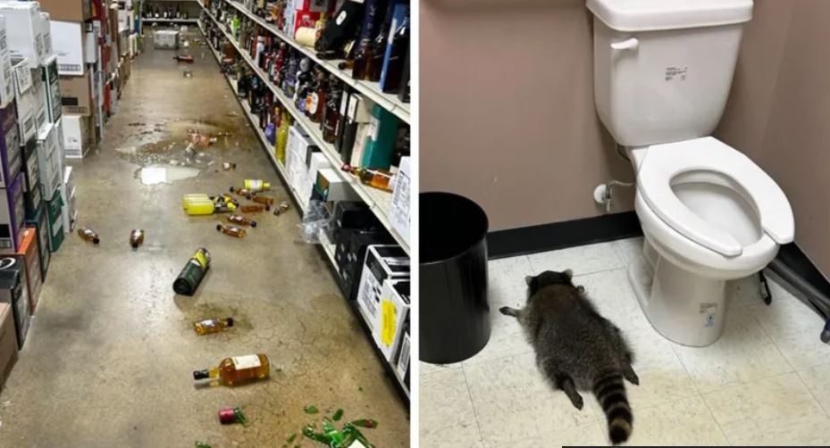 Staff at a Virginia liquor store got a shock on Saturday when they came into work to find the store had been broken into by a very intoxicated raccoon.