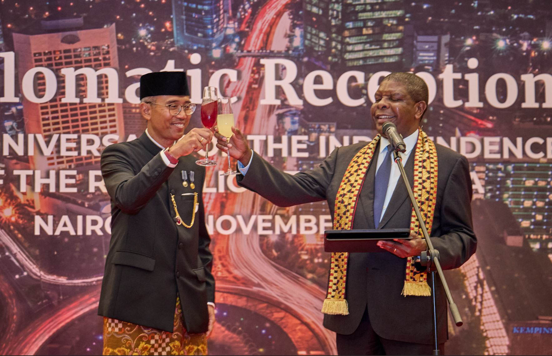 Indonesian Ambassador to Kenya Witjaksono Adji and Ministry of Foreign Affairs Director General for Political and Diplomatic Affairs Josphat Maikara toast a glass of wine, enduring friendship and partnership between Indonesia and Kenya
