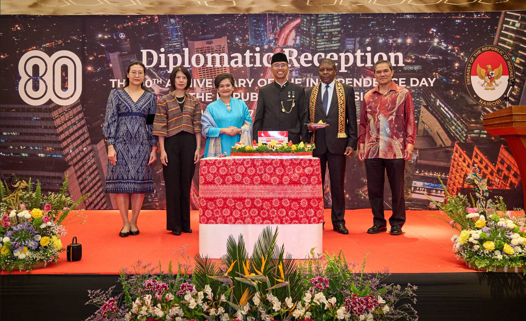 The Indonesian Embassy in Nairobi, led by Ambassador to Kenya Witjaksono Adji poses for a photo during the 80 years of Indonesia's Independence celebrations at JW Marriot Hotel in Nairobi on November 7, 2025./DOUGLAS OKIDDYAmong the dignitaries present were Ministry of Foreign Affairs Director General for Political and Diplomatic Affairs Josphait Maikara, the Philippines ambassador to Kenya Marie Charlotte Tang, the high commissioner of Malaysia Ruzaimi Mohamad, Palestine ambassador to Kenya Hazem Shabat, Iraq ambassador to Kenya Akram Jameel, Iran ambassador to Kenya Ali Goulampour, Charge d’Affaires of Thailand Ms Sasilada Kusump, among other guests.