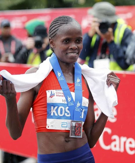 The Kenyan star is also a two-time Chicago Marathon champion, winning in 2018 (2:18:35) and again in 2019 when she delivered her record-breaking run.